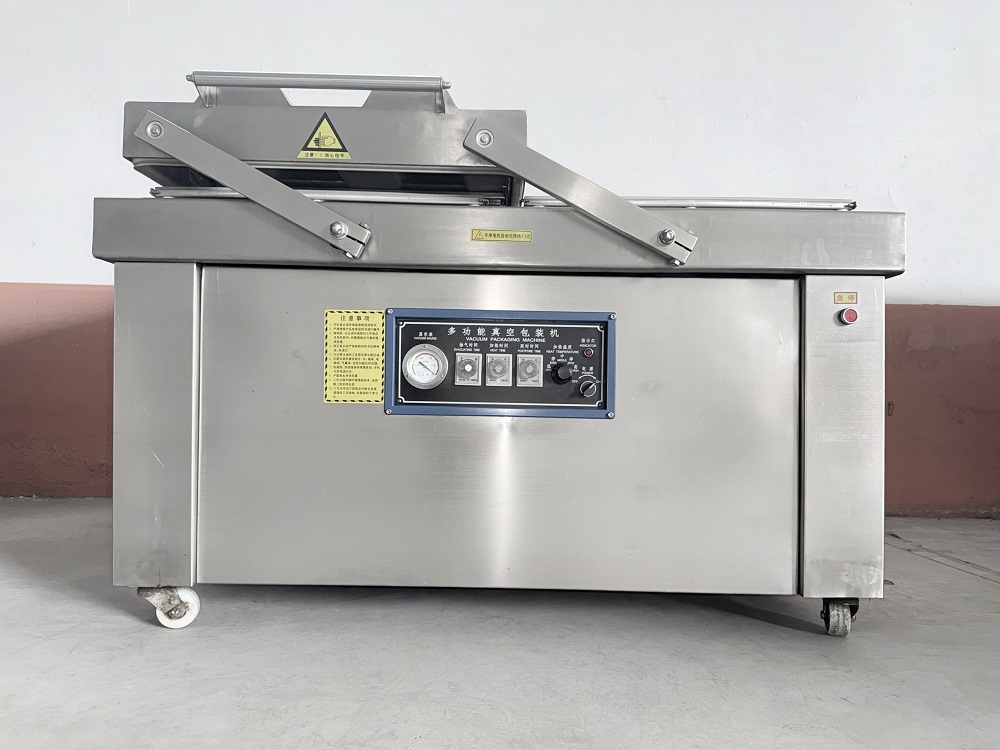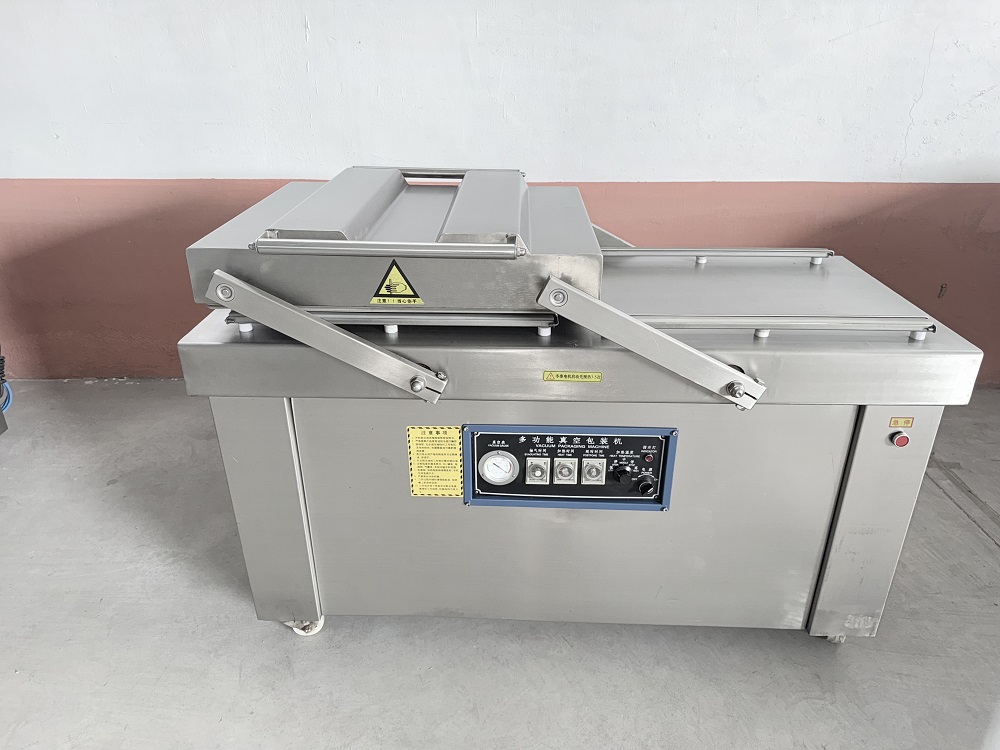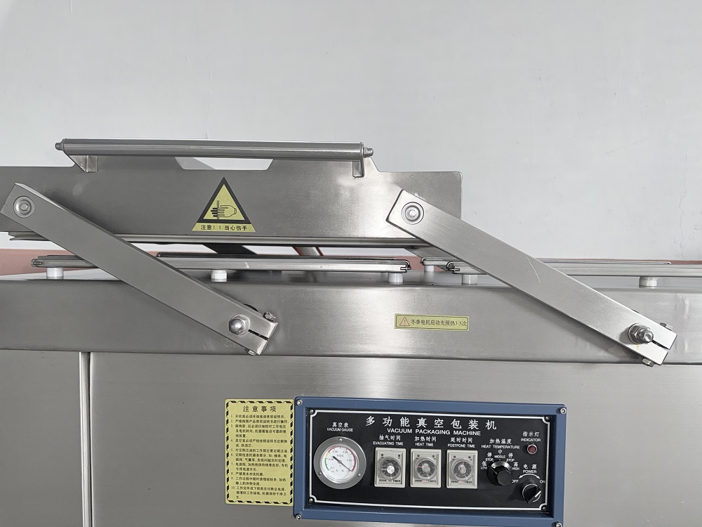 真空双室包装机采用优良技术、功能齐全、能耗低、适用范围广。抽真空、封口、冷却、进气至机盖开启,全过程自动控制。机身为不锈钢材质,智能数码控制,设置好抽真空、封口时间,工作只需按下真空盖即可,操作简单,节省时间。